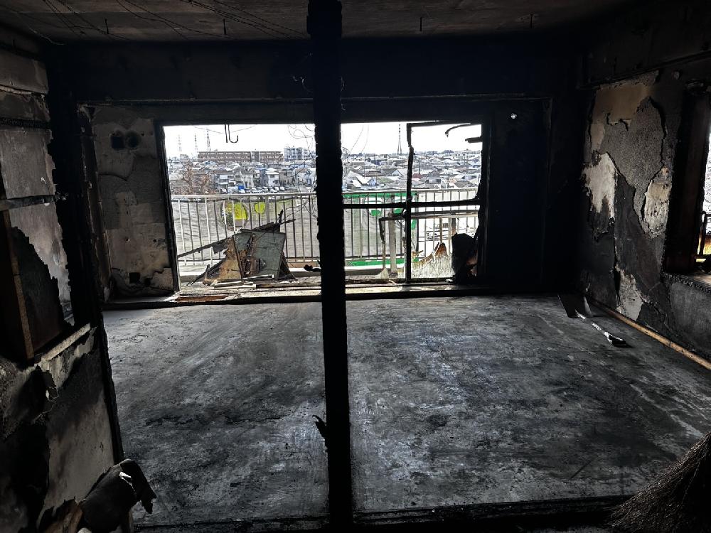 暖房器具からの火災により、火元の一室が全焼し、火災清掃を依頼。